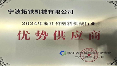 • 喜報(bào)!拓鐵再獲浙江省塑機(jī)協(xié)會(huì)“優(yōu)勢(shì)供應(yīng)商”榮譽(yù) 浙江省塑料機(jī)械行業(yè)協(xié)會(huì)于2024年11月在深圳召開一屆二次會(huì)員代表大會(huì)暨二次理事會(huì)議,屆時(shí)公布了“優(yōu)勢(shì)供應(yīng)商”評(píng)選結(jié)果,并對(duì)獲獎(jiǎng)單位頒發(fā)榮譽(yù)獎(jiǎng)牌和證書。